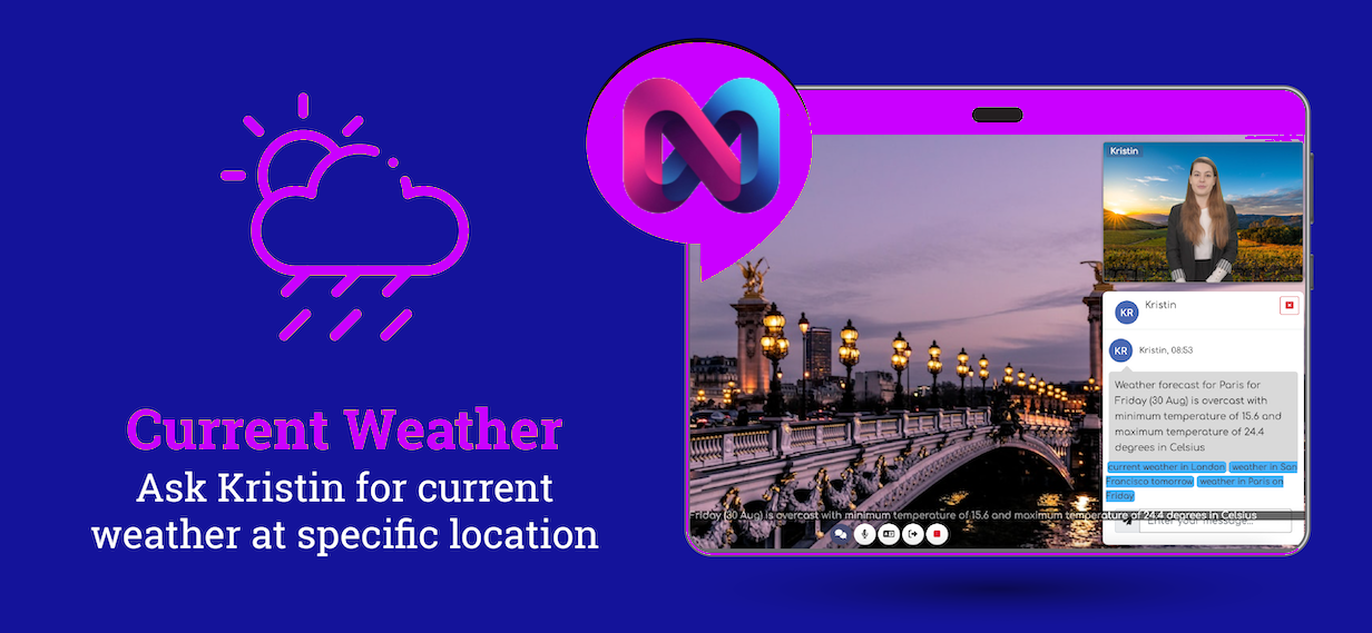 check_circleA few good examples of these amazing live streaming avatars are- "Personal Assistants" | "E-COMMERCE OPERATOR" | SUPPORT AIDE" | "HEALTHCARE REGISTAR" | "SIGHTSEEING GUIDE" | "TRAVELLING MATE" | "BUSINESS ASSISTANT" | AIRPORT INFORMER" or whatever you can imagine for a interactive live streaming avatar. - The possibilities are endless!